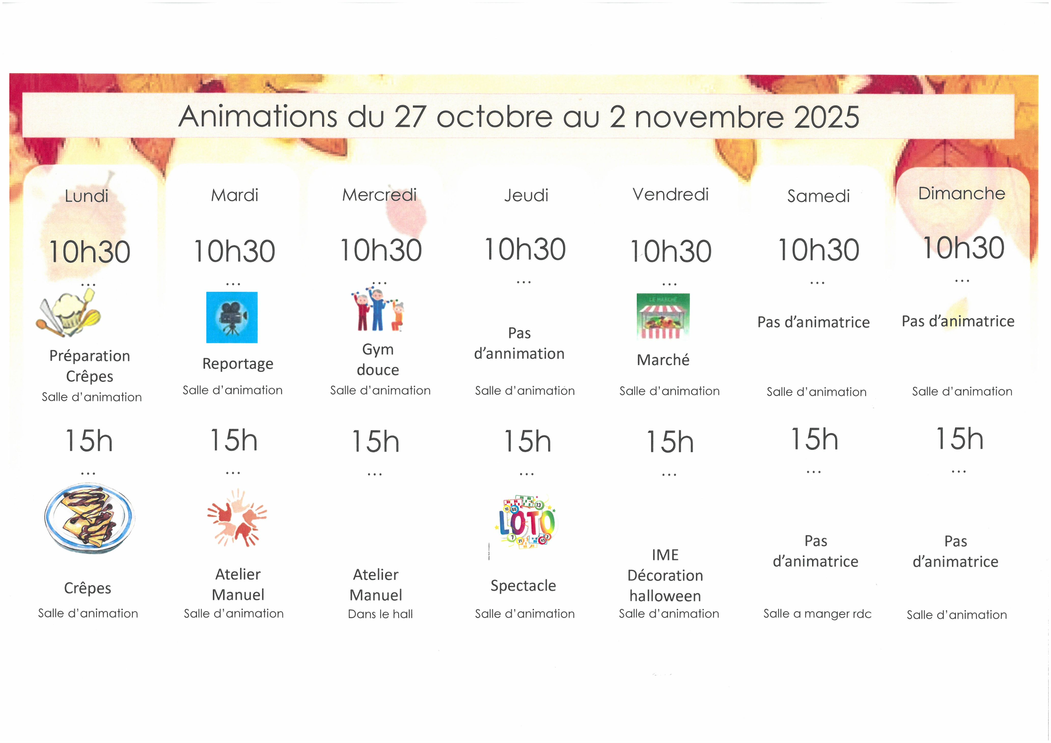 Animations du 27 octobre au 2 novembre 2025